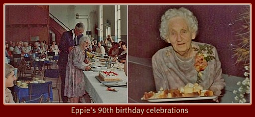 Brenda Balchin serenaded her with adapted songs like "Hello Dolly (Eppie)" and "We’ve grown accustomed to her Face". Brenda and Tim Balchin, Mary Scorer and Elaine Watney acted out an impromptu side-splitting "three-act play" of an incident that occurred when Eppie was an estate agent. And of course there was a lovely spread of tea and cakes.