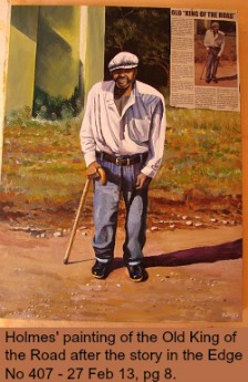 For a short time Holmes was employed by Outeniqua Bottling Company in George as a sign writer where he used his creative flair in work he was getting paid for. He was encouraged to obtain his driver’s licence so he could drive himself to his sign-writing appointments.