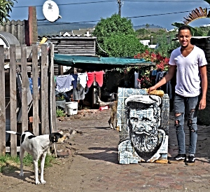 His street art, an exciting form of artwork now popular throughout the world, has been on display at the Sedgefield Slow Festival and the KKNK Festival in Oudtshoorn.