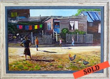 He had agreed to prepare a portfolio of 40 paintings for a pending Johannesburg exhibition mid-year, (he had met the owner of the Joburg gallery while he was visiting Cape Town). Once Holmes had completed the portfolio, he created some numbered prints and sold 3 of these prints at the Mosaic Market in Sedgefield.