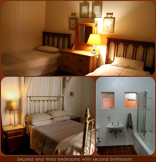 2 bedrooms have twin beds and one bedroom has an antique brass double-bed.