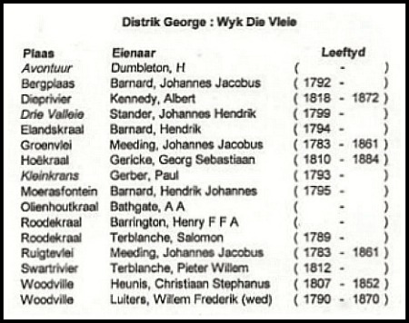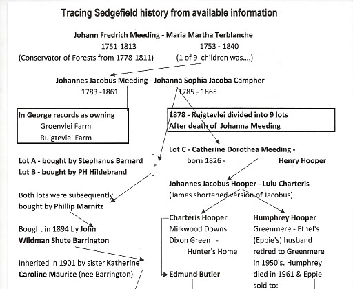 I have put together a Sedgefield history tree using information from several available books, local information and a very useful little volume I found in the Sedgefield library that contained fairly comprehensive records of property (farms) owned in different districts that fell under George from the late 1700's. I would say it was compiled from archived documents.