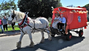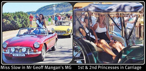 The brilliant local St James Church band led the way behind the cars of the local MG Club, the leader of which showcased the recently elected Miss Slow to the great delight of the driver, Geoff Mangan.
