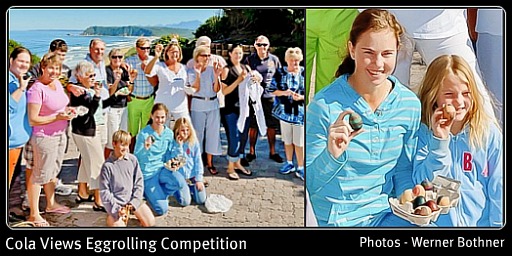 Cola Views Complex on Cola Beach created their own fun event on Sunday morning to slot in with the Slow Festival, an Egg Rolling Competition. This required some pre-competition planning because firstly the eggs had to be hard boiled and then decorated.