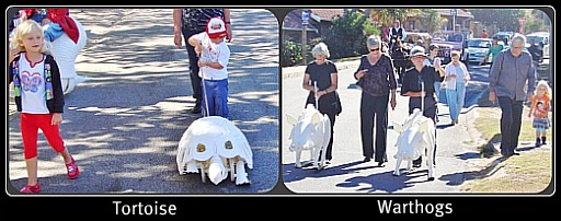 Participants and spectators alike were intrigued by the animals that were being so realistically represented. One and all had great fun starting out at the local junior school where photo shoots were busily in progress until the menagerie began to line up for the parade.