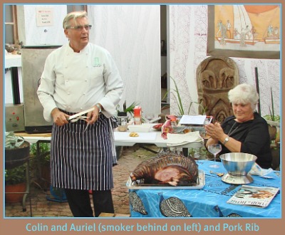 A great vote of thanks to our enthusiastic host, Debbie of Venus Ear, all the informative speakers, the cooks who produced the delicious fare and our wonderful chef, Colin who provided the heart of the meal with his divinely smoked meats, goat’s milk cheddar and haloumi that he also gave a slight smoking to and also coordinated the program for the day.