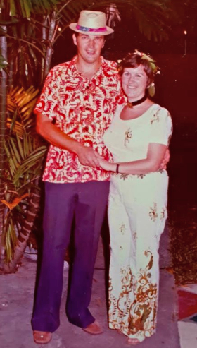 The happy couple enjoying a night out in CyprusSeven days after the proposal, the happy couple were married. The joyous occasion was attended by a small group of friends and family, John (best man) and Julie Mousdale, Colin's mum, Margaret, and Colin’s Uncle Derrick and his partner. Colin's 14 year old sister, Wendy went to meet Auriel’s mum, Cynthia, her brother, Jason and sister, Charmaine, for the first time, at Waterloo Station in the early hours on their wedding day.