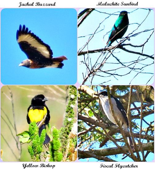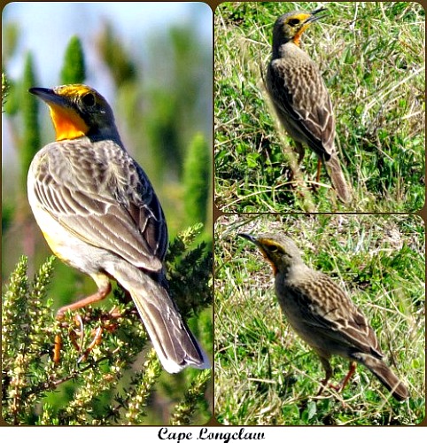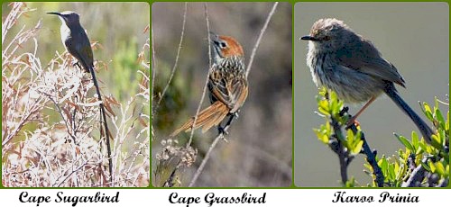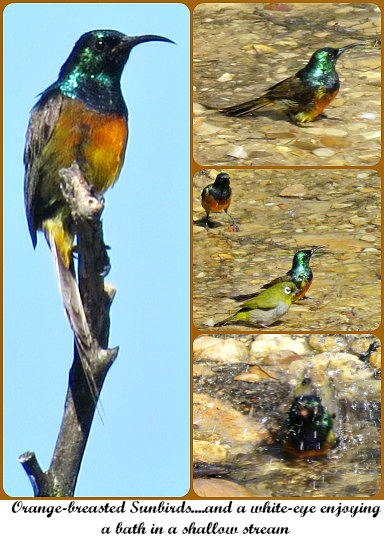 Birds were constantly being identified as we travelled – Bokmakierie, Forest Buzzard, Malachite Sunbird, Greater Double-collared Sunbird, White-eye, Karoo Prinia, African Hoopoe, Red-faced Mousebird, Jackal Buzzard, Fiscal Flycatcher, Neddicky, Cape Batis, Cape Longclaw, Common Waxbill, Plain-backed Pipit and African Pipit. A possible Common Quail sped past us too fast to positively identify. At a shallow stream crossing a dirt road we watched as a Cape Siskin, White-eye and Orange-breasted Sunbirds bathed energetically.