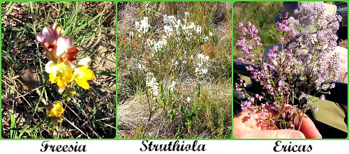 The fynbos biome provides plentiful food for raptors and many other creatures such as bat-eared foxes, African wild cats, genets and puff adders in the form of multitudes of vlei-rats and 4 striped field mice that thrive in the rich plant diversity. Driving along a valley slope full of flowering ericas Mike explained that the species Struthiola (Featherhead) only exudes a scent at night attracting moths to pollinate its flowers.