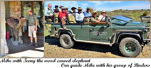 Soon we clambered aboard the sturdy Land Rovers, each with 10 eager birders and their own knowledgeable driver/guide heading off in different directions to explore Gondwana Game Reserve. Our young guide was Mike Fabricius, a mine of information he willingly and enthusiastically shared with us.
