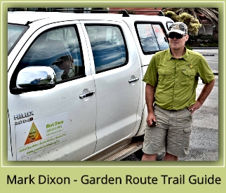 Mark Dixon’s (Judy's son) guided 63km 5 day Garden Route Trail from Wilderness to Brenton-on-Sea is as unique as its unforgettable. For hikers unfamiliar with this area to have a knowledgeable guide with you on the trail enhances an already outstanding adventure. His emphasis is on providing relevant environmental information, birding and enjoying the whole encounter with the outdoors and it has the following advantages: