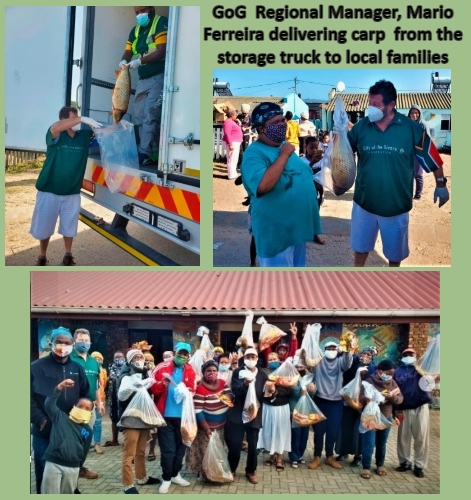 Team catching Carp for Local DistributionRealising that the Covid 19 epidemic had increased poverty in low income communities leaving many without resources to feed their families, a memorandum of understanding was negotiated at length and eventually signed by two primary role players, Cape Nature and Knysna Municipality to approve a feeding program with KM providing personnel to regulate fish distribution to various communities.
