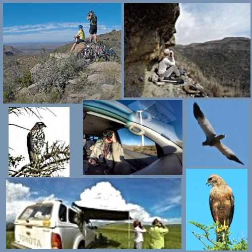 Mark and Amanda did many of these surveys together to assess whether the erection of more than 27 wind farms in the Western Cape region were in suitable places giving consideration to 32 priority species of birds. The areas in question included the Roggeveld, Stilbaai, Mossel Bay, Uniondale, Cookhouse, Bedford, Molteno, Jeffreys Bay, Elliot, and Grahamstown.
