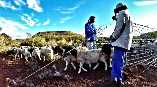 Shepherds releasing their sheep from their night kraalShepherds take the flock out of the night kraal to water and then into a paddock of limited size. The high density of the flock forces each animal to eat what’s in front of it so a mixture of vegetation is eaten, (otherwise sheep are notoriously fussy) hoof action breaks up the hard top layer of soil and micro-organisms from defecation fertilise and moisturise it.