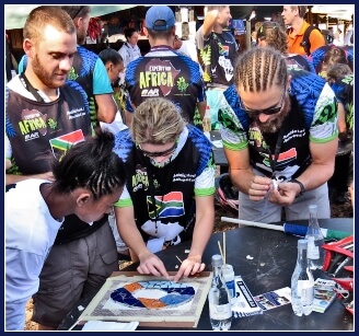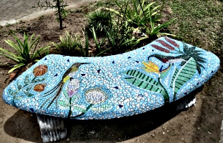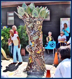 To celebrate South Africa's Art and Culture on Heritage Day 2011, the Masithandane crafters with their young artistic counterparts unveiled a wonderful mosaic interpretation of the Tree of Life outside our local Sedgefield Library in Flamingo Street.