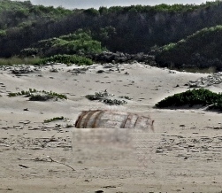 Brandy Keg from the Nepaul Shipwreck in 1850.A long time resident, Gwyneth Pienaar, was given 2 pieces of pottery by an elderly resident some years ago who found them embedded on the beach one morning many years before that. She was getting rid of many of her things and giving items away to people she thought might like them. She suggested that the pieces could have come from the Nepaul shipwreck.