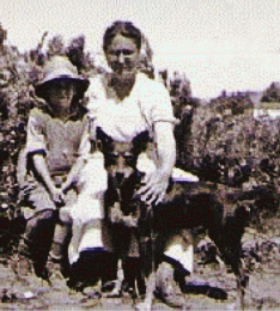 Miss Hart with her nephew, Ken and her dog.Sue loved visiting Miss Agnes Hart, who was the first Station mistress. She would always wear a white coat