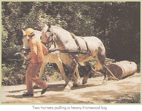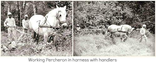 At the time, the Department of Forestry employed a sizeable herd of Percheron horses that, along with their handlers, had been trained to work throughout the State forests. The technique was called slipping. The horses would be led to felled trees and then harnessed to logs that they dragged back along slip paths.