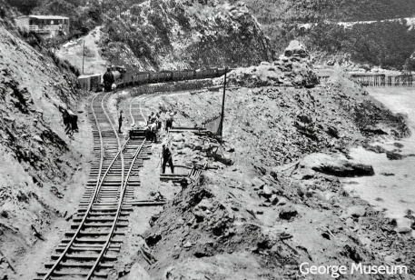In 1922 a railway line was surveyed by Mr Dempster, the resident engineer in George, which was the largest settlement in the Garden Route region then. In 1924, construction started on the railway line. A major stumbling block was the difficult terrain and one particular railway bridge that had to be built to negotiate the Kaaimans River. That alone cost £66,000.