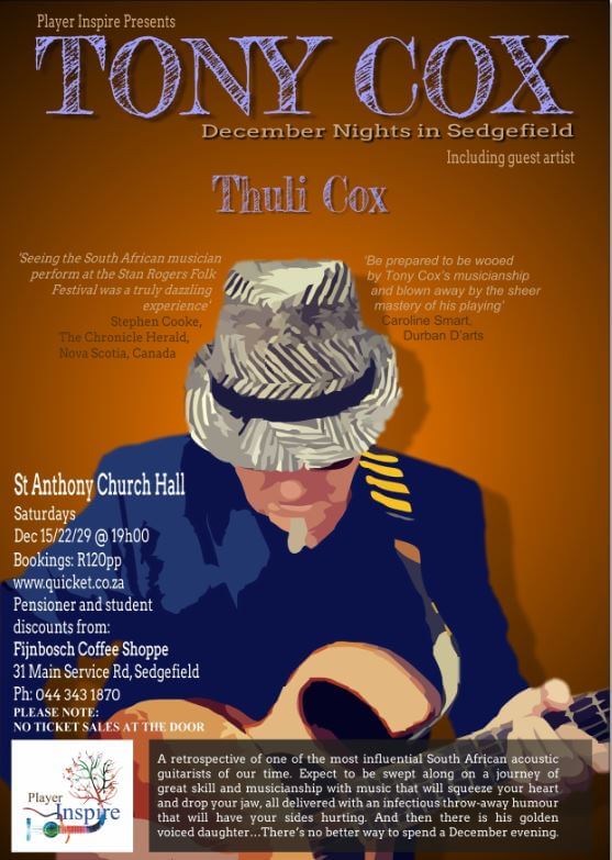 In 1991, with a show called “The Loneliness of the Long Distance Guitar” Tony Cox walked away with the prestigious ‘Pick of the Fringe” Award at the Grahamstown National Arts Festival. The award epitomised his musical journey and his extraordinary, one-of-a-kind talent.